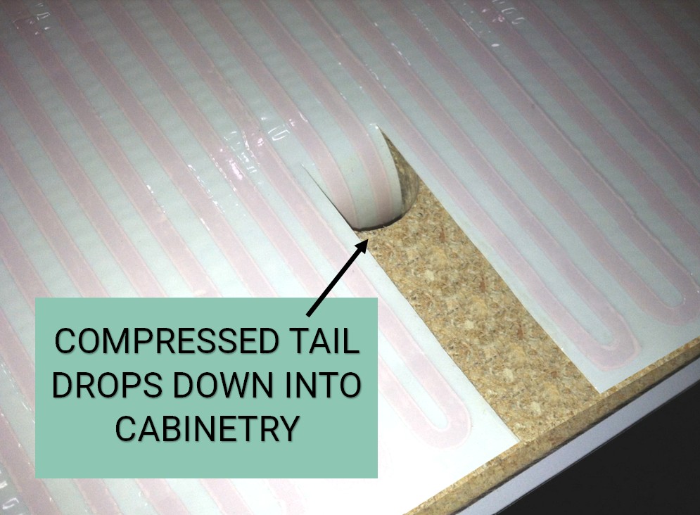 Our compressed heaters can handle the weight and compression of any stone countertop, which can be as high as 30 lbs per square foot. Plus, the mats are designed to comply with uneven compression forces due to non-flat wood such as gaps in the wood, raised cabinet edges, embedded supports and non-smooth bottom surfaces.
