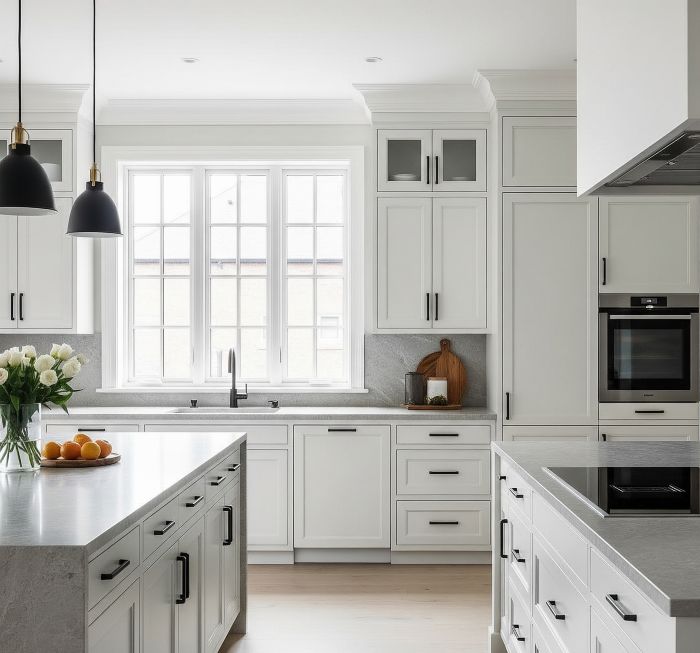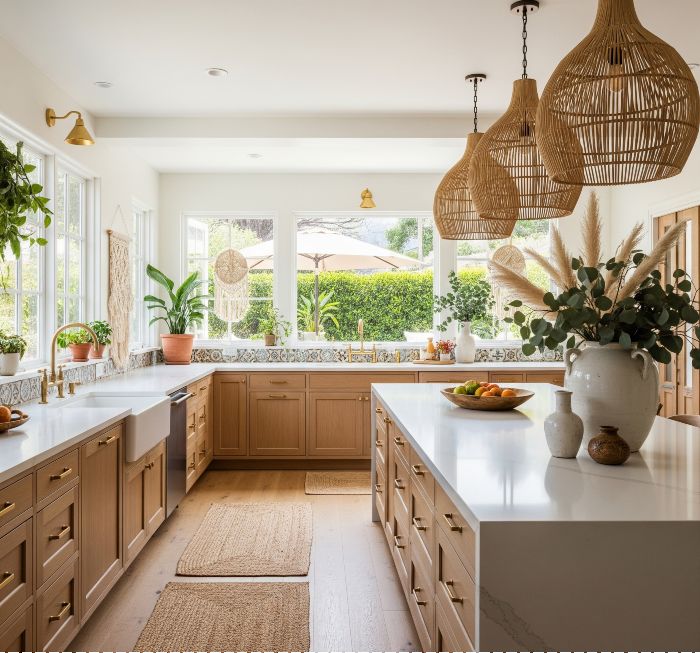 DIY update: Paint your cabinets or walls in soft neutrals like taupe, sage, or off-white. Add wood accents—like a butcher block cutting board or rattan bar stools—for a grounded, luxurious feel.