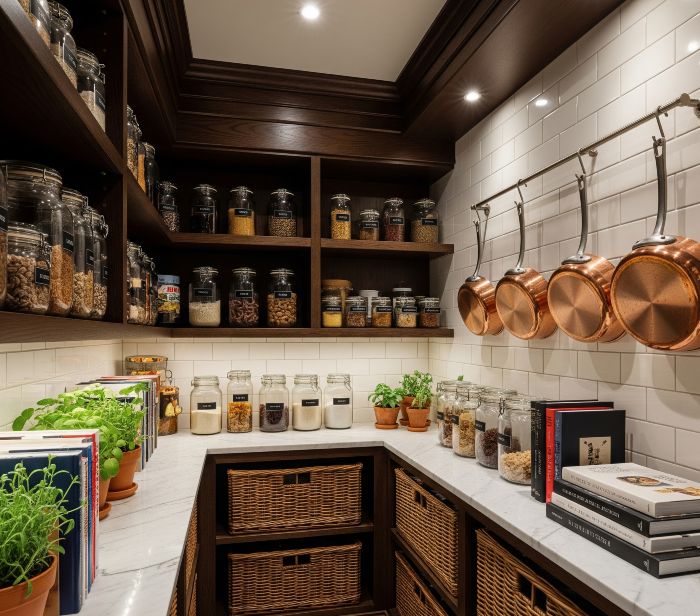 DIY update: Add organizers to your drawers and cabinets, install a pull-out trash bin, or hang a pot rack inside a pantry door. The cleaner your counters look, the more “celebrity kitchen” it feels.